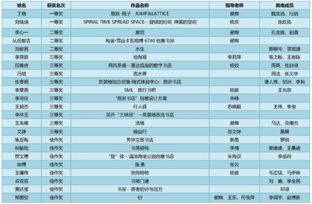 竞赛获奖名单链接:“旅游书店”创意设计优秀作品评选获奖名单公布